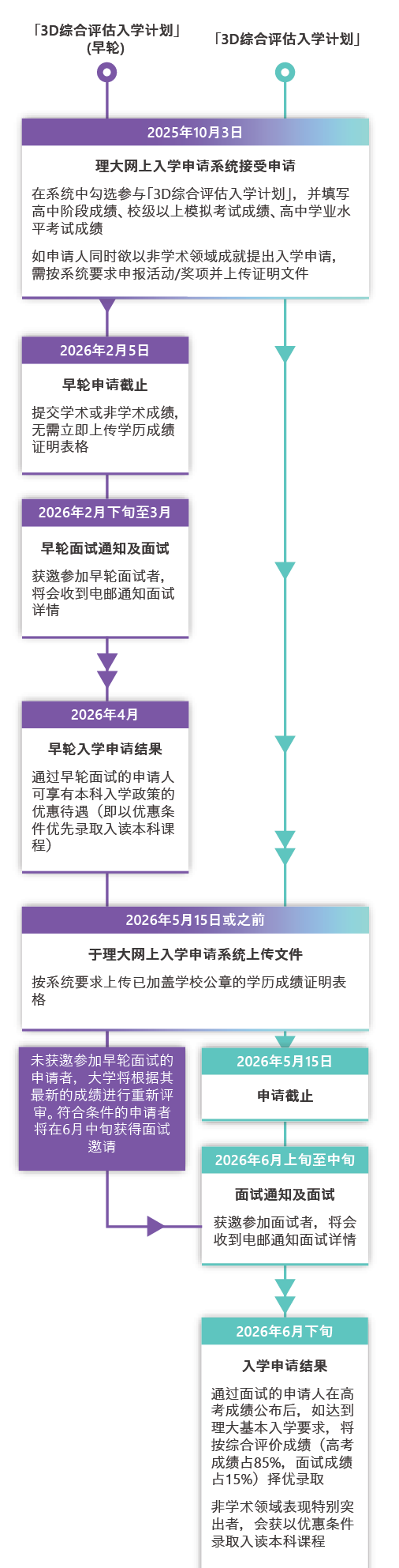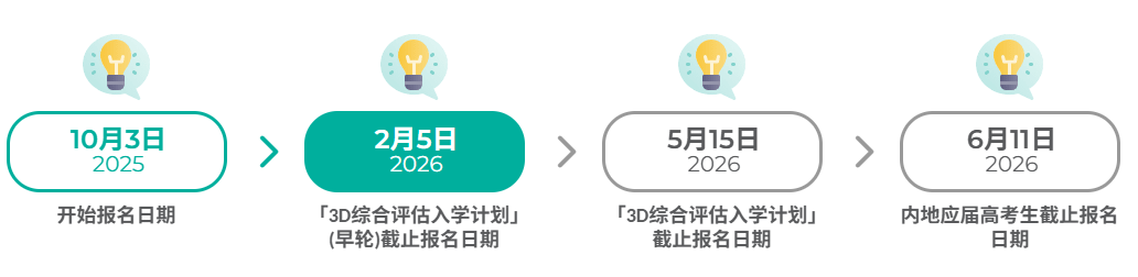 今年港理工德艺计划与3D计划合并,整合为“3D综合评估入学计划”。参与资格基本不变,由一轮招生改为两轮招生,早轮2026年2月5日截止报名,第二轮2026年5月15日截止报名。
