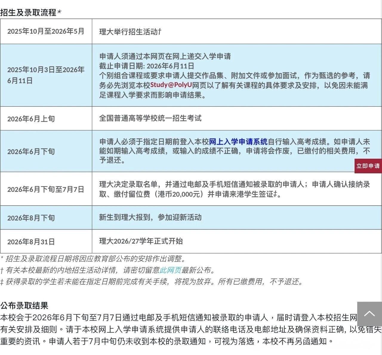 香港理工大学2026内地本科生申请时间为2025年10月3日-2026年6月11日。